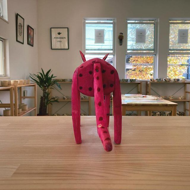 シンプルな造形とアニリン染料で彩色された素朴な、オアハカン ウッド カーヴィング初期の作風のまま作品を作りつづけている、アンヘル・クルスさんによる2017年の作品です。